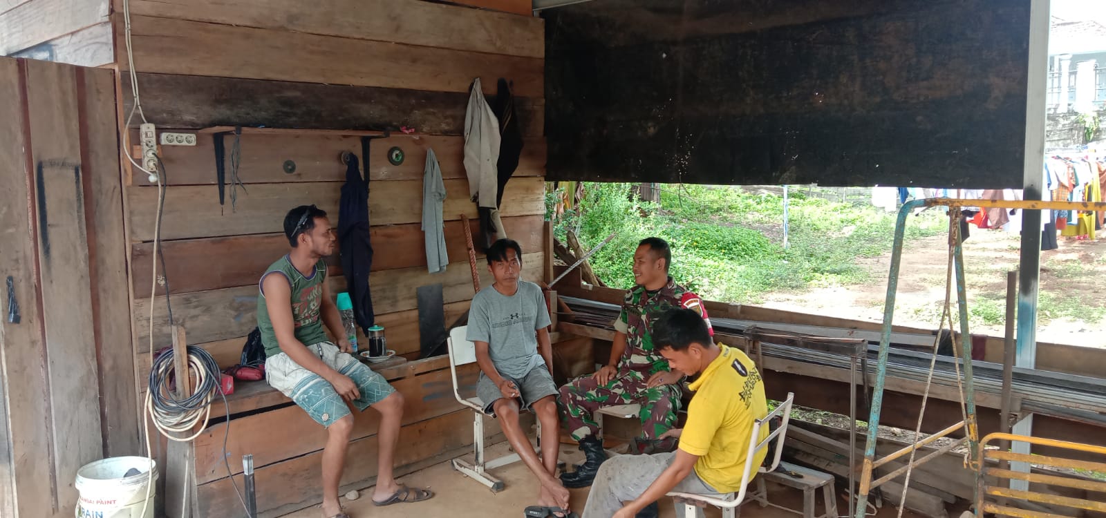 Babinsa Koramil 406-01/Rawas ulu Serda supianto komsos bersama warga didesa sungai lanang Kecamatan Rawas ulu ,kabupaten Musi Rawas utara