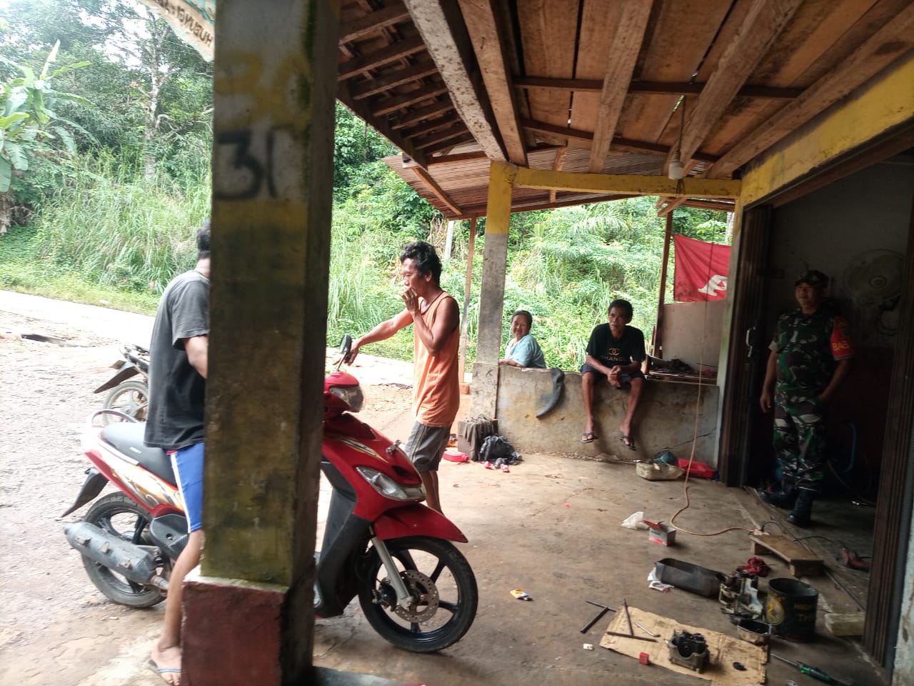 Babinsa Koramil 406-07/Jayaloka koptu Agus susilo Komsos Sambangi Bengkel Sepeda Motor di wilayah binaan