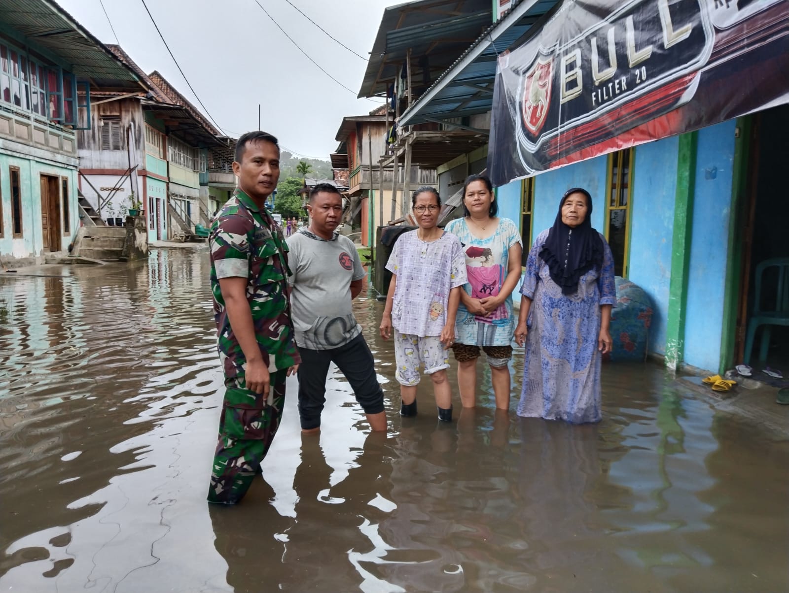 Lanjut Serda Arian Arizal menambahkan, “Walaupun air sungai sudah sampai ke pemukiman warga Alhamdulillah sampai saat ini kondisi air belum sempat masuk ke rumah-rumah warga. Kami juga para Babinsa menghadapi musim penghujan akan harus lebih ekstra dalam monitor wilayah.