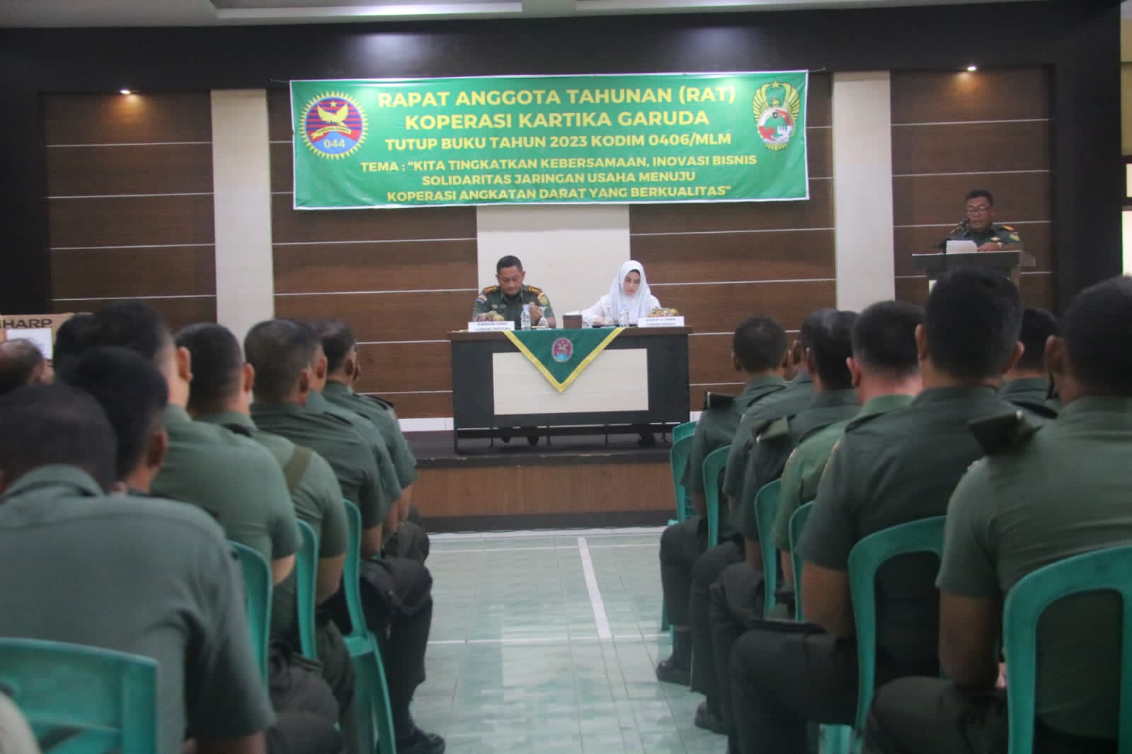 Lensa Garuda- Lubuk Linggau. Dalam rangka tutup buku tahun 2023 Koperasi Kartika Garuda Kodim 0406/Lubuk Linggau menggelar rapat anggota(RAT). Dandim 0406/Lubuk Linggau Letkol Inf Kunto Adi Setiawan SE.,M.Han hadir dalam kegiatan yang dilaksanakan di Aula Pamungkas Kodim 0406/Lubuk Linggau. Jl Garuda Kelurahan Tanjung Indah Kecamatan Lubuk Linggau Barat I Kota Lubuk Linggau. Rabu(10/01/2024).