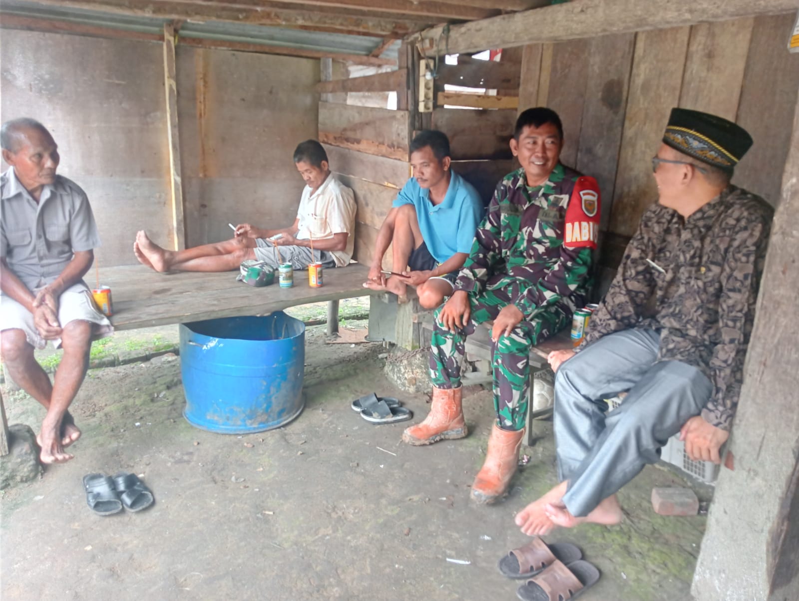 Babinsa Koramil 406-02/Rawas ilir Serda nurkholis komsos bersama warga desa beringin sakti Kecamatan Rawas Ilir ,kabupaten Musi Rawas Utara .kamis(11/01/2023).