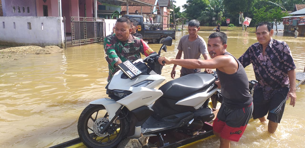 Babinsa Koramil 406-03/Rupit bersama polsek dan tim BPBD Kab. Rupit segera bertindak cepat dengan meluncur ke TKP dan mengevakuasi warga yang melintas di jalan yang terendam banjir.