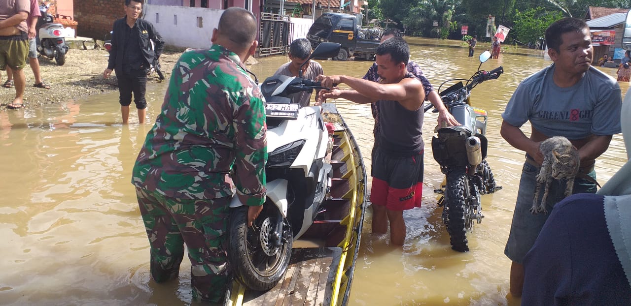 Serta bentuk Kemanunggalan TNI dan Rakyat, upaya seperti ini akan terus dilakukan sebagai bentuk untuk meringankan beban terhadap koban banjir, ini juga sebagai wujud kepedulian TNI terhadap masyarakat yang sedang mengalami musibah. Serta bentuk Kemanunggalan TNI dengan Rakyat, ucapnya.