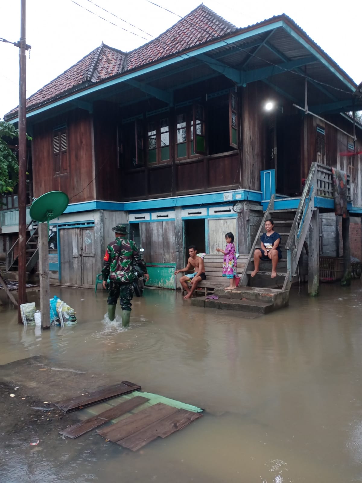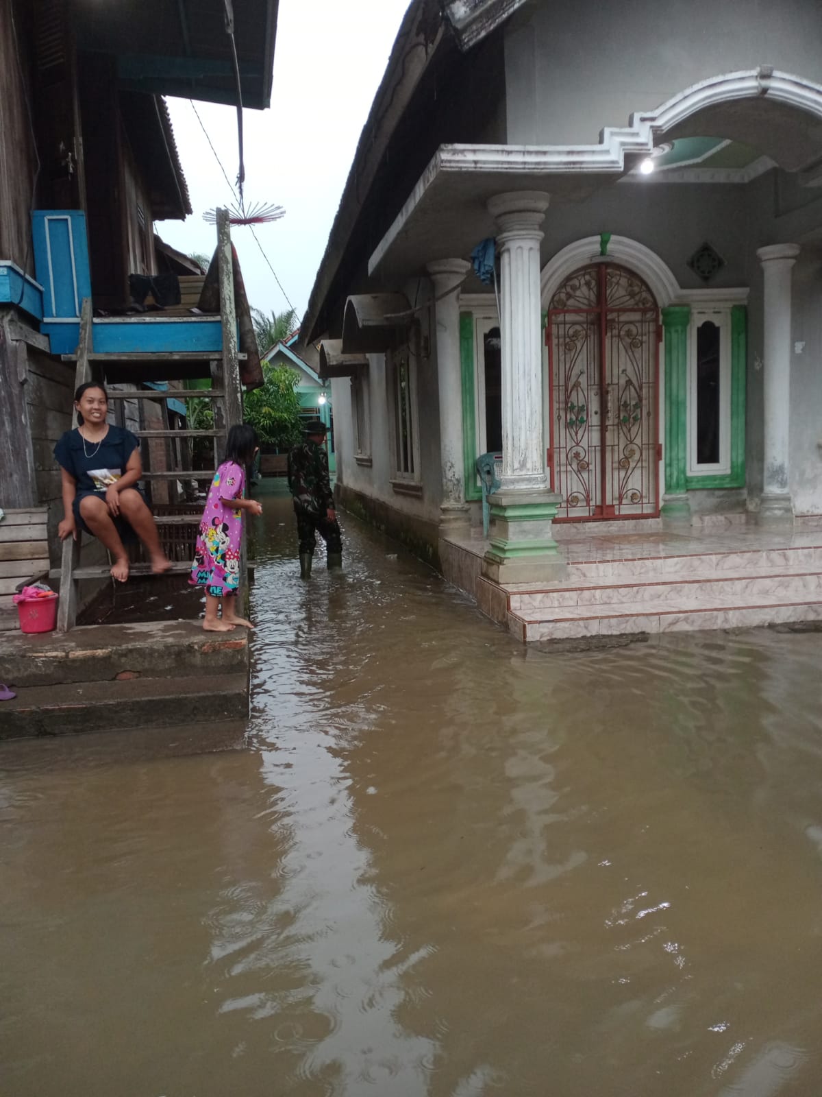 Antisipasi banjir Sertu Sutarno Babinsa Koramil 406-04/Muara Lakitan turun ke wilayah desa binaan.