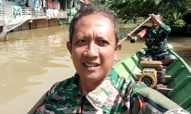 Danramil juga menjelaskan upaya penanganan masalah banjir ini yang dilakukan yaitu melakukan pendataan jumlah valid masyarakat yang terdampak banjir di wilayah, berkoordinasi dengan BPBD, Dinsos & Polsek setempat untuk mendirikan Posko Kesehatan dan Jalur Evakuasi korban terdampak banjir.