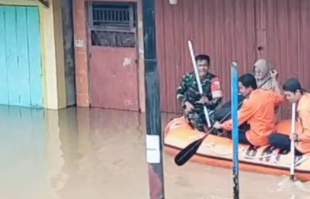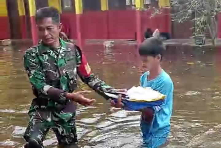 Upaya dalam memberikan bantuan awal dari Kodim kepada masyarakat terdampak banjir tampak para Babinsa bergerak bersama dalam membantu penyelamatan barang milik masyarakat dan sekolah dan mengevakuasi kelompok rentan untuk mencegah timbulnya korban.(Pendim 0406/LLG).