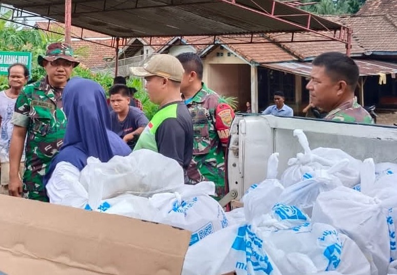 Koramil 406-03/Rupit Aktif Membantu Pendistribusian Logistik Kepada Korban Banjir Di Muratara