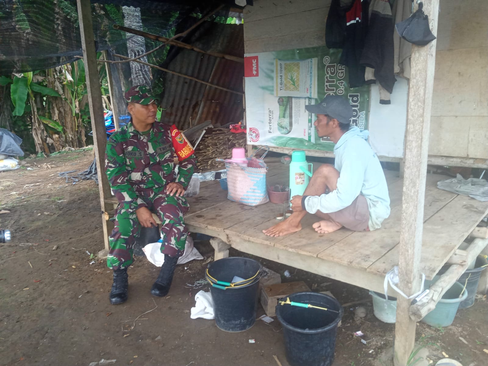 Jalani Silaturahmi Babinsa Koramil 406-06/Tugumulyo Serda Joko S Melaksanakan Komsos Bersama Warga Diwilayah Binaan.