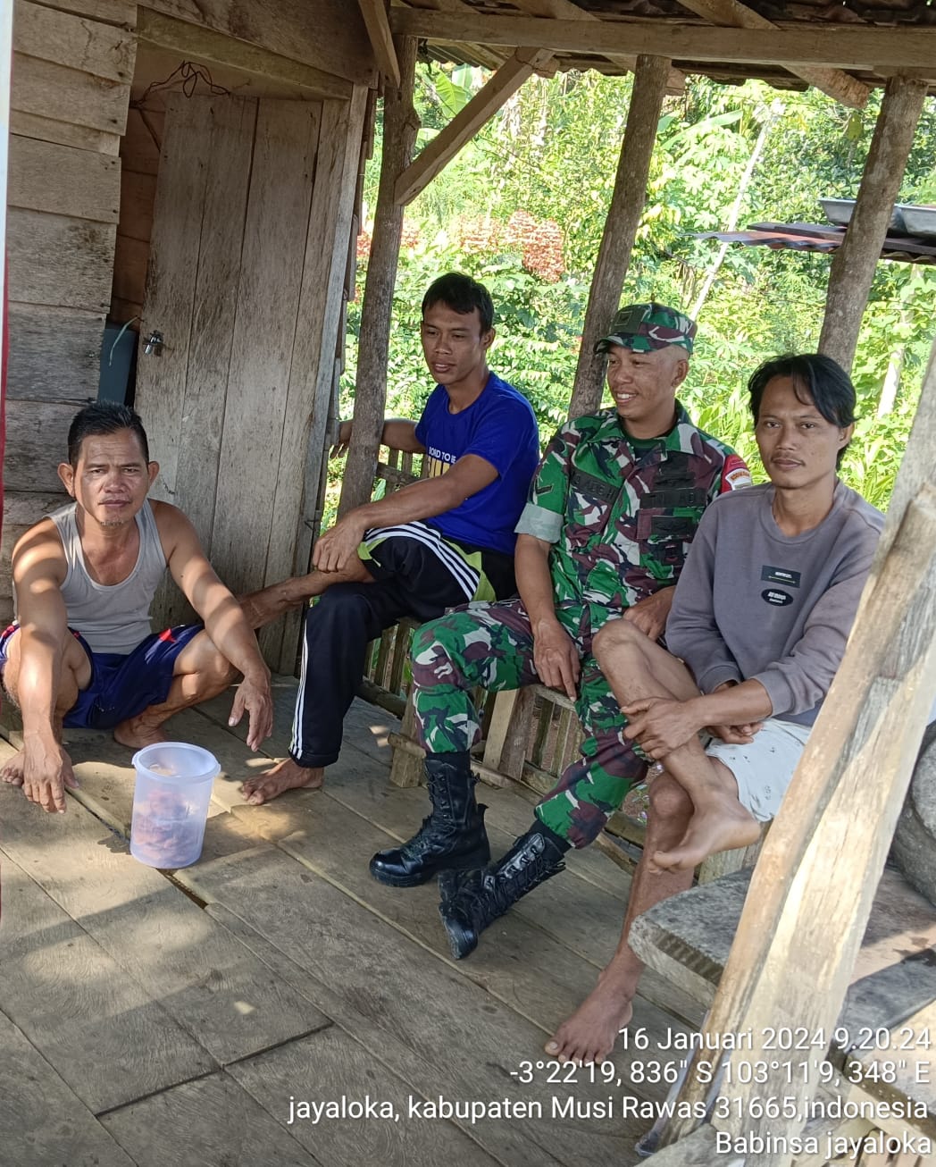 Babinsa Koramil 406-07/Jayaloka Kodim 0406/Lubuklinggau, Serda Yuda Ade Hermawan melaksanakan Komunikasi Sosial (Komsos) dengan warga binaannya dan juga mitra karib dalam rangka meningkatkan peran Apkowil guna mengetahui setiap perkembangan situasi yang terjadi di wilayah.