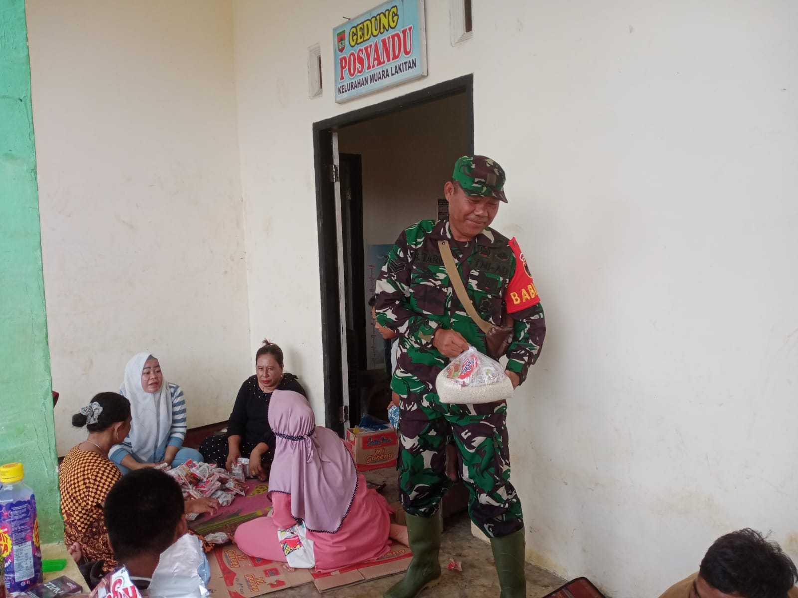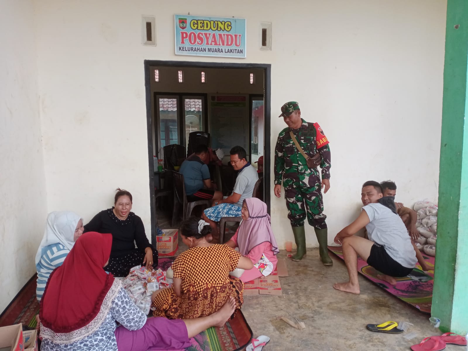 Babinsa Koramil 406-04/Muara Lakitan Dampingi Penyaluran Bantuan Sembako Untuk Warga Korban Bencana Banjir