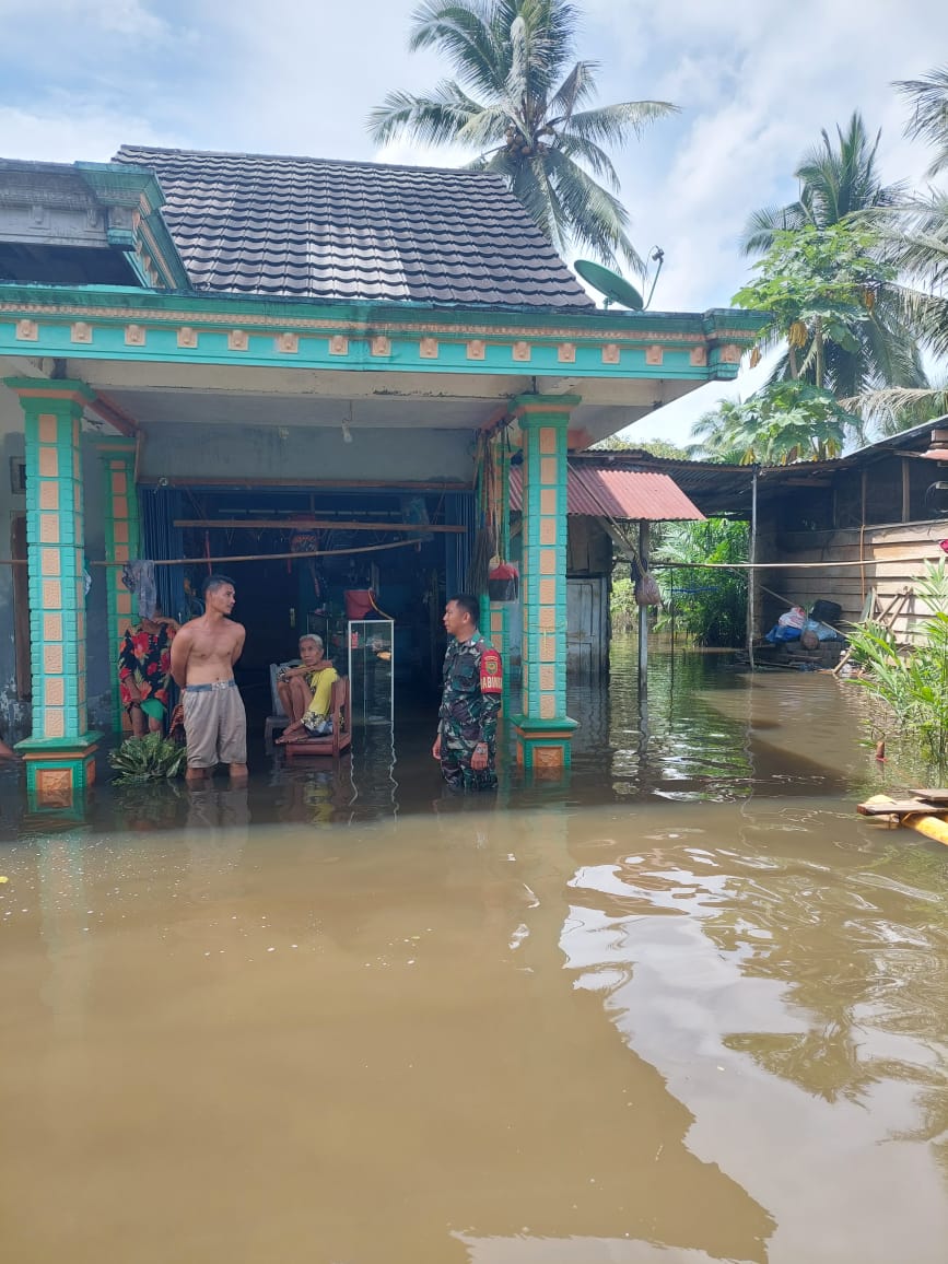 Babinsa Koramil 406-05 Muara Kelingi Pantau Perkembangan Kondisi Banjir Di Wilayah