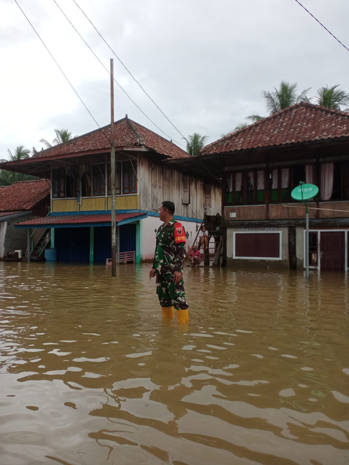 Sertu Sutarno Babinsa kelurahan Muara Lakitan selalu aktif patroli dan pantau Wilayah Binaan yang Saat ini terjadi banjir. Kamis (18/01/2024).