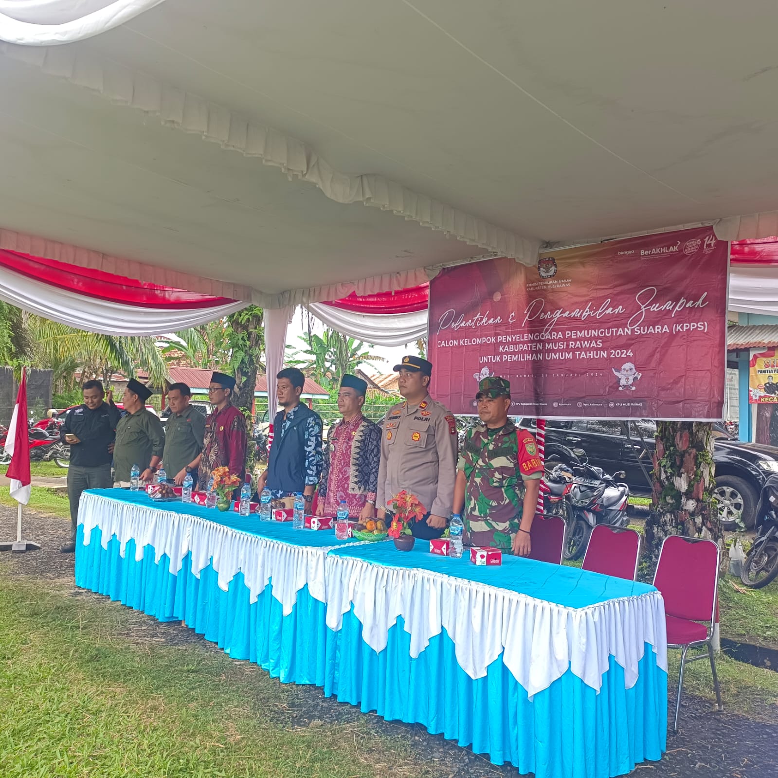 Lensa Garuda- Musi Rawas. Babinsa Koramil 406-05/Muara Kelingi Koptu Adim hadir dalam kegiatan Pelantikan Calon KPPS se-Kecamatan BTS ULU yang dilaksanakan di lapangan kantor Camat BTS ULU Kabupaten Musi Rawas. Kamis (25/01/2024).