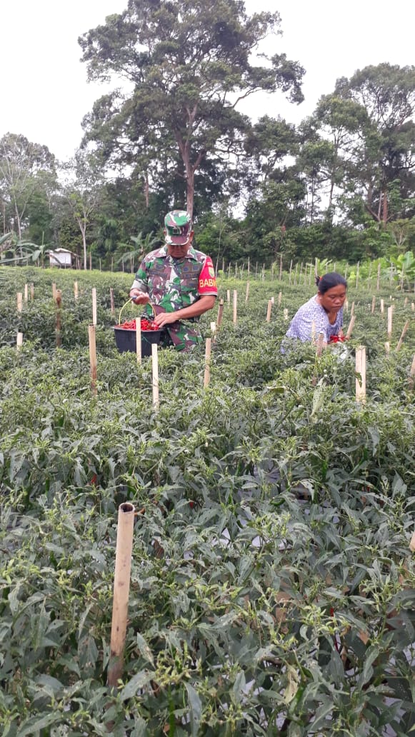 Babinsa Koramil 406-01/Rawas ulu Wujud kebersamaan dengan warga desa binaan Babinsa bantu petani panen cabe.