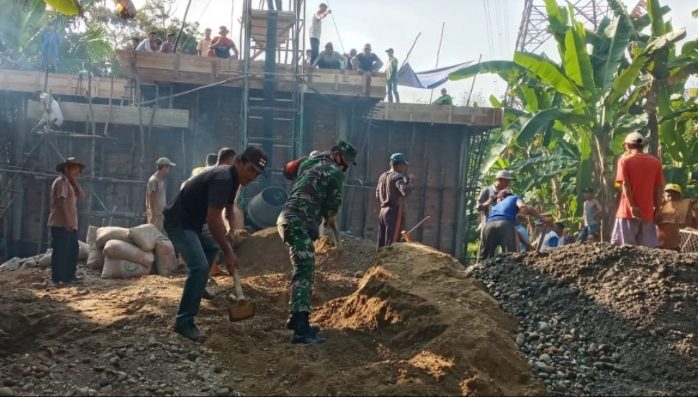 Babinsa Koramil 406-01/Rawas ulu Serka Rusli melaksanakan kegiatan gotong royong didesa binaan.