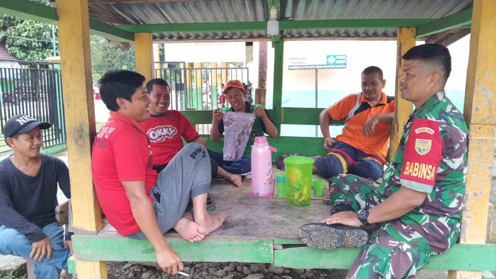 Babinsa Koramil 406-01/Rawas ulu Serda musliadi komsos bersama warga didesa binaan.