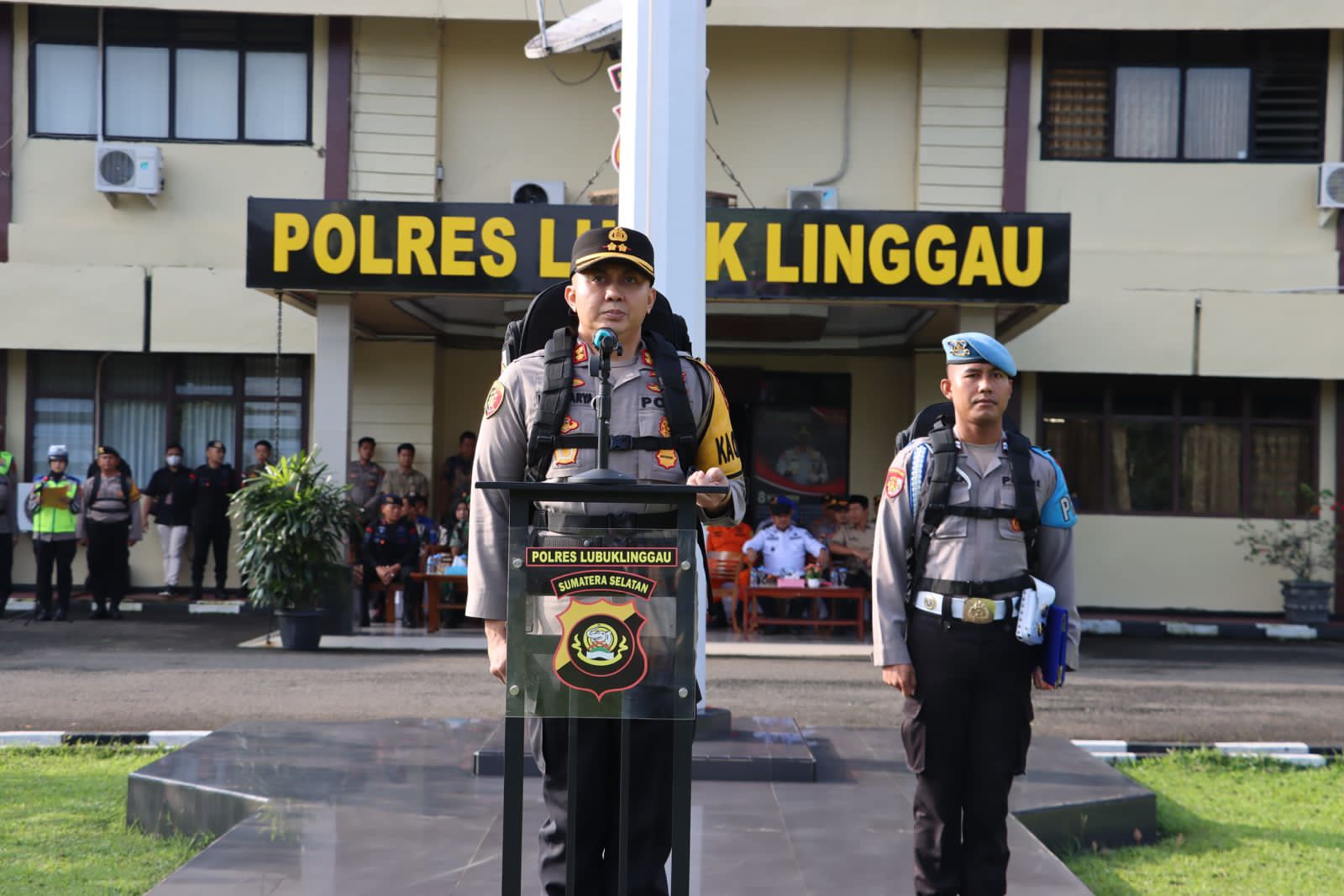 Apel Penyerahan Sarpras Personil Pam TPS Pemilu Polres Lubuk Linggau TA. 2024