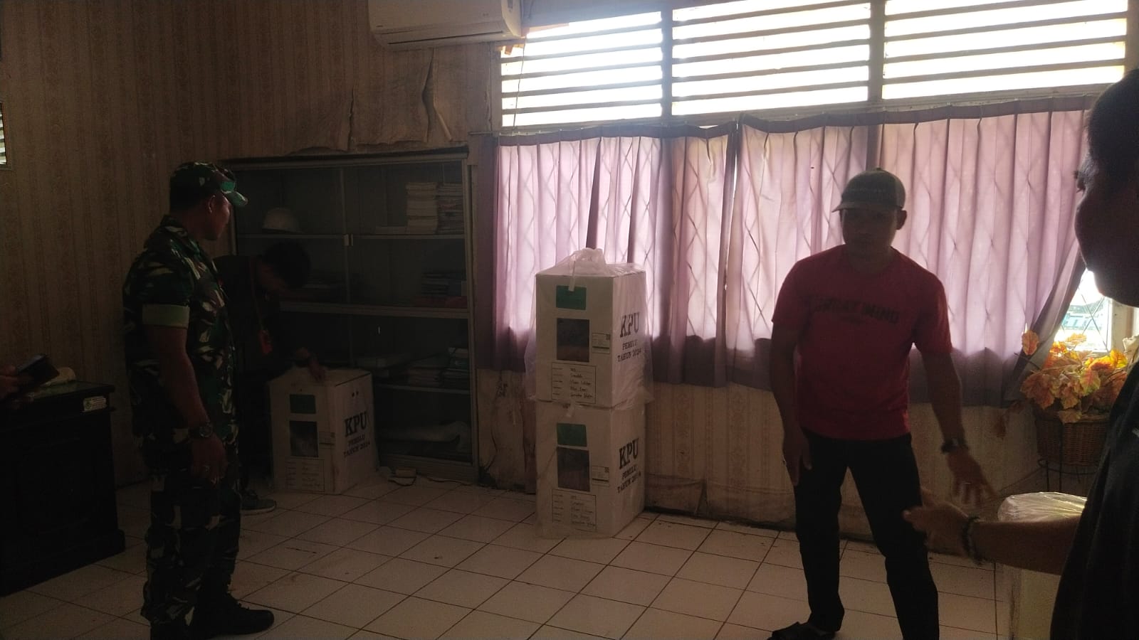 Babinsa Koramil 406-04/Muara Lakitan Monitoring Pendistribusian Kotak Suara dan logistik Pemilu di wilayah binaan.