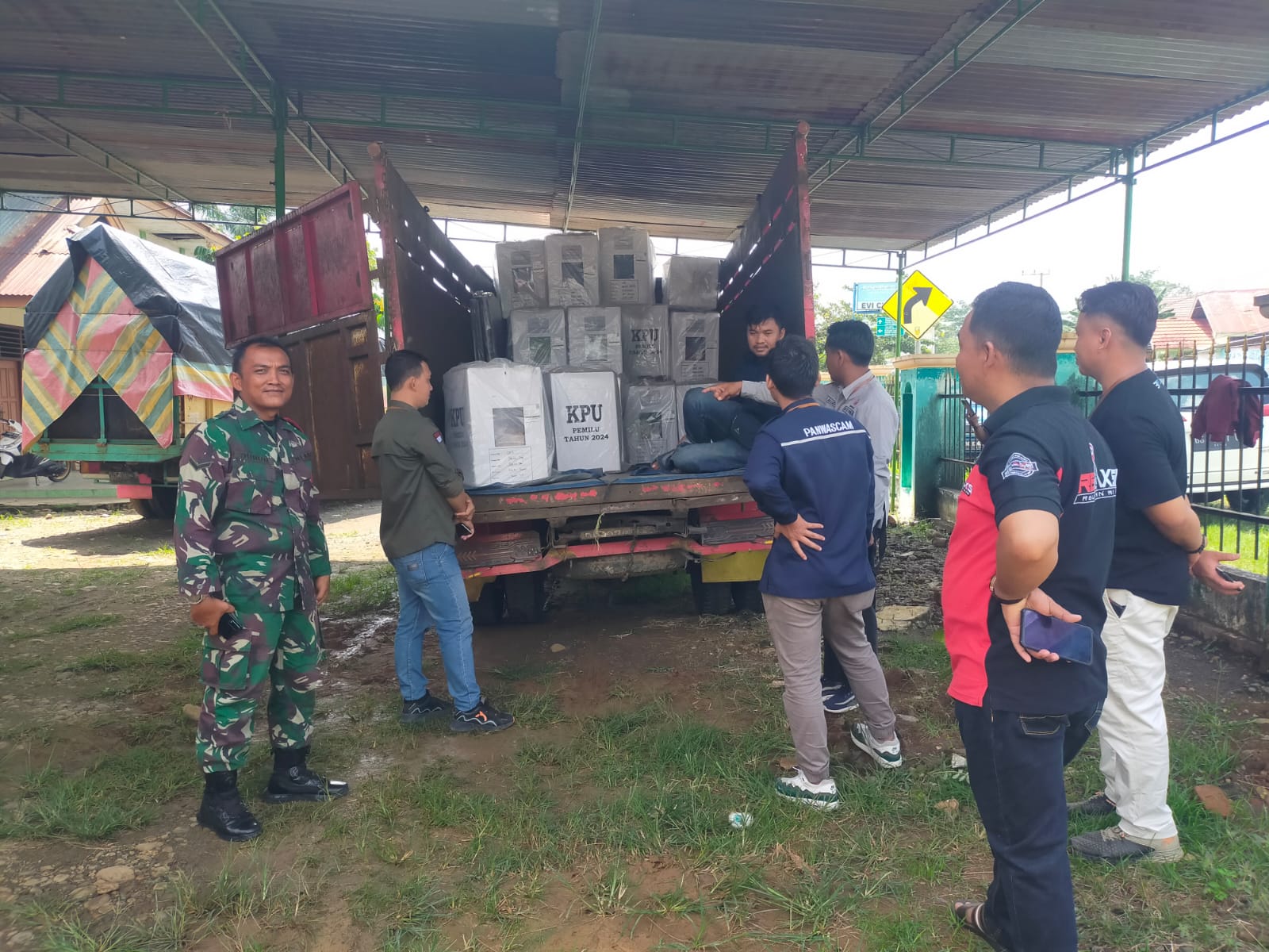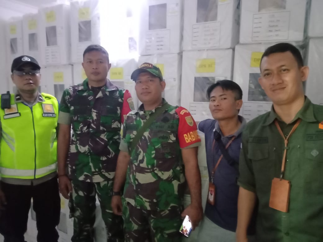 Babinsa Koramil 406-06/Tugumulyo mengatakan demi kelancaran pendistribusian logistik pemilu menuju Kecamatan TNI dan Polri terus bersinergi dan selalu mendukung serta siap memberikan pengamanan serta pengawalan.