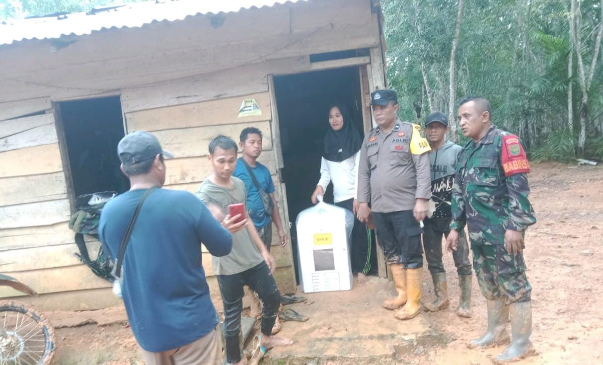 Saat Pengawalan Pendistribusian Logistik Pemilu Danramil 406-11/Nibung Dan Kapolsek Bermain Lumpur