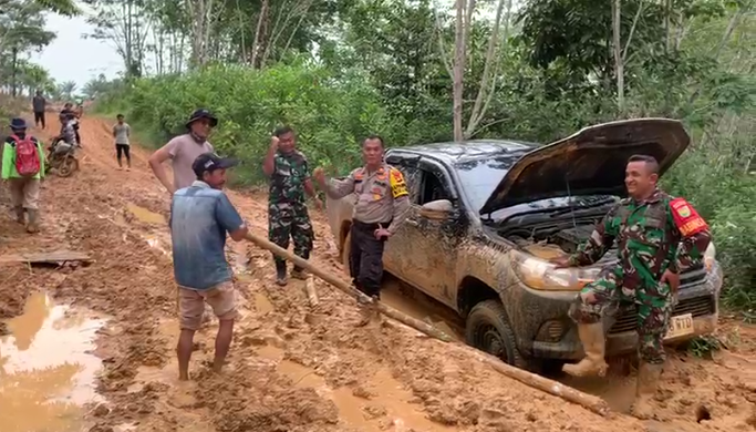 Proses susah payah dan harus bermain lumpur untuk mencapai suatu tujuan pengawalannya. Anggota Koramil jajaran Kodim 0406/Lubuk Linggau dan anggota Polres Muratara itu harus melalui medan yang sulit karena sebagian besar jalan tanah yang rusak , becek serta berlumpur.