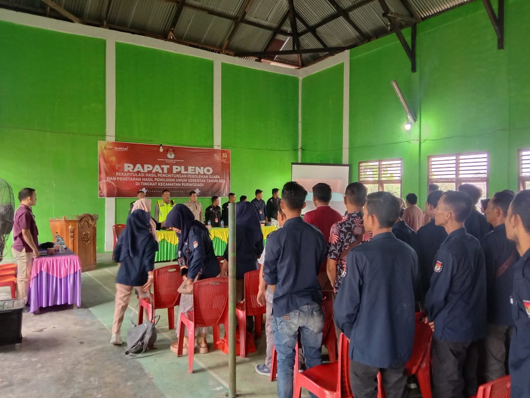 Babinsa Koramil 406-06/Tugumulyo menghadiri undangan Rapat Pleno Pemilu 2024 bertempat di Kecamatan Purwodadi, Kabupaten Musi Rawas.
