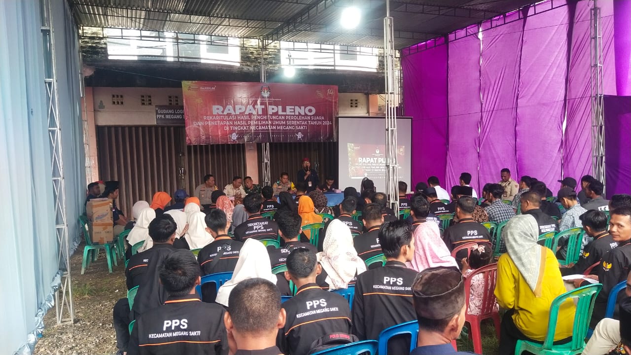 Pelda Rudianto hadiri rapat pleno terbuka Pemilihan Umum 2024 di kantor PPK sektarian Kecamatan Megang sakti, Kabupaten Musi Rawas. Rapat tersebut bertujuan untuk merekapitulasi hasil penghitungan suara pada Pemilihan Umum di tingkat Kecamatan Megang sakti. Minggu (18/02/2024).