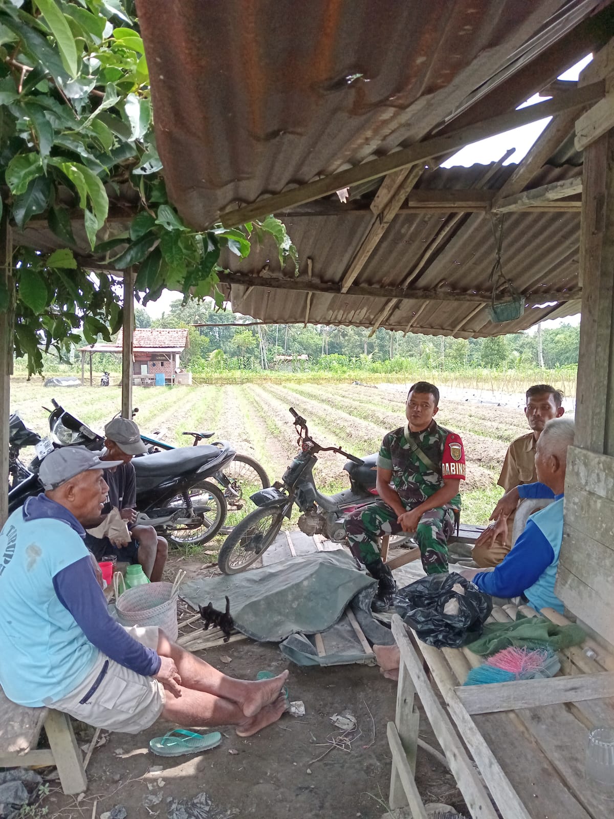 Babinsa Koramil 406-06/Tugumulyo Serda Syukra Dede Melaksanakan Komsos Di Desa C Nawangsasi, Kecamatan Tugumulyo, Kabupaten Musi Rawas