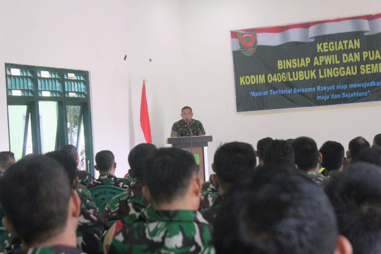 Lensa Garuda- Lubuk Linggau. Komandan Kodim 0406/Lubuk Linggau Letkol Inf Kunto Adi Setiawan S.E.,M.Han Buka kegiatan Binsiap Apwil dan Puanter Kodim 0406/Lubuk Linggau semester 1 tahun 2024. Bertempat di Koramil 406-10/LT Jl. Yos Sudarso Air Kuti Kecamatan Lubuklinggau Timur 1 Kota Lubuklinggau. Selasa(27/02/2024).