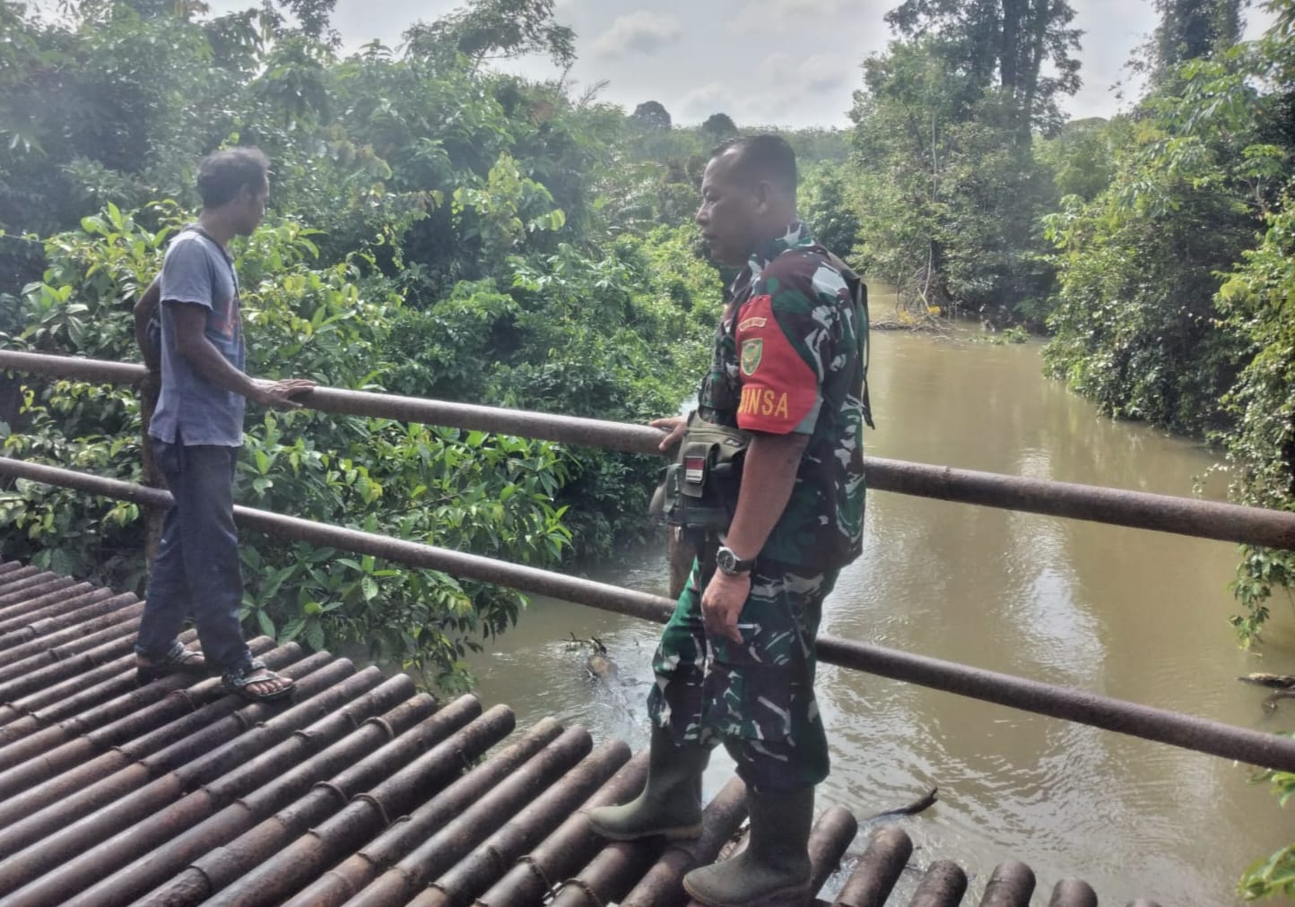 Langkah Antisipasi Banjir, Babinsa Koramil 406-07/jayaloka Cek Debit Air Sungai temelat