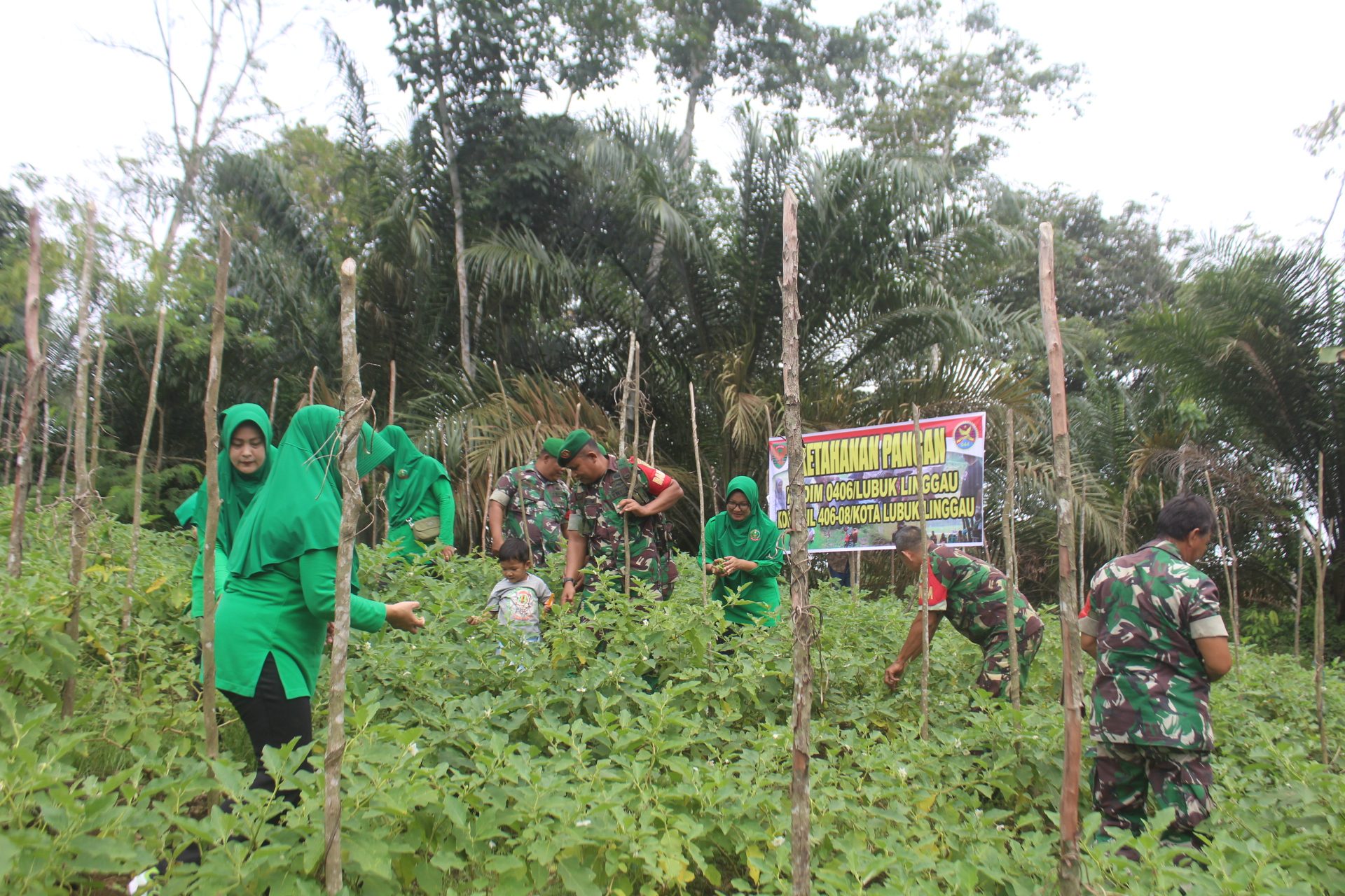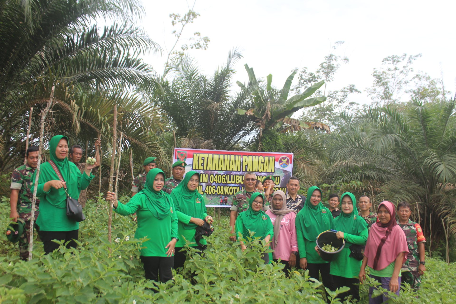 Lensa Garuda- Lubuk Linggau. Dalam rangka peningkatan ketahanan pangan, Danramil 406-08/Kota Lubuk Linggau Kapten Inf Well Edwar Roni bersama para Babinsa dan Ketua Ranting 7 Persit KCK Cabang XVII dan anggota Persit melaksanakan panen Raya cabe dan terong di lahan ketahanan pangan binaan Koramil 406-08/Kota Lubuk Linggau. Kelurahan Taba Baru RT 03 , Kota Lubuk Linggau. Kamis (07/03/2024).