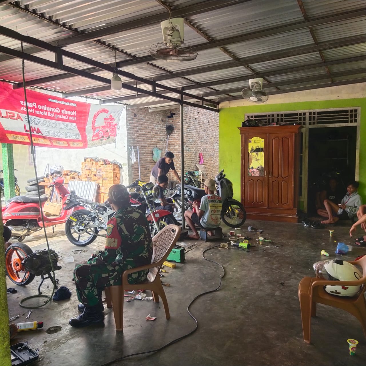 Babinsa Koramil 406-04/Muara Lakitan Sertu tugiyanto melaksanakan anjangsana/ komsos dengan Bapak Topan salah satu pemilik bengkel motor yang berada di desa Wonosari kecamatan Megang sakti, kabupaten Musi Rawas. Kamis (21/03/2024).