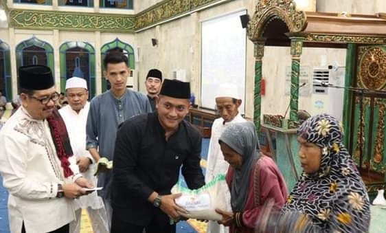 Dalam acara peringatan Nuzulul Qur’an tersebut diserahkan bantuan dari pengurus Masjid Agung As-Salam dan pengurus Baznas Kota Lubuk Linggau berupa paket sembako kepada masyarakat yang berhak menerimanya.