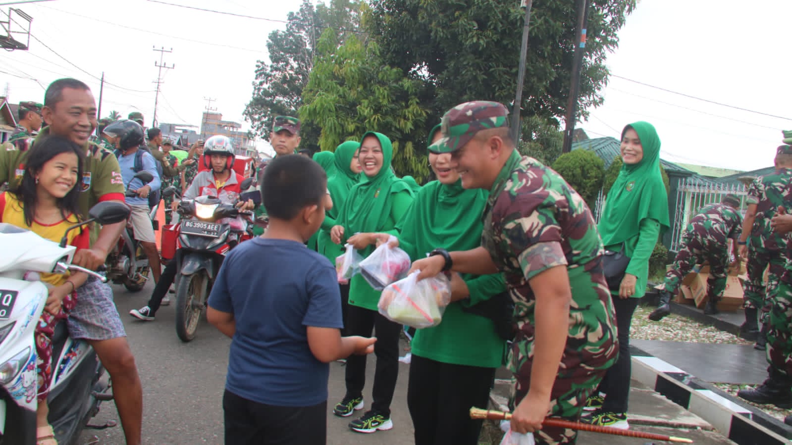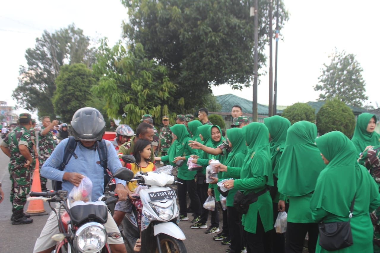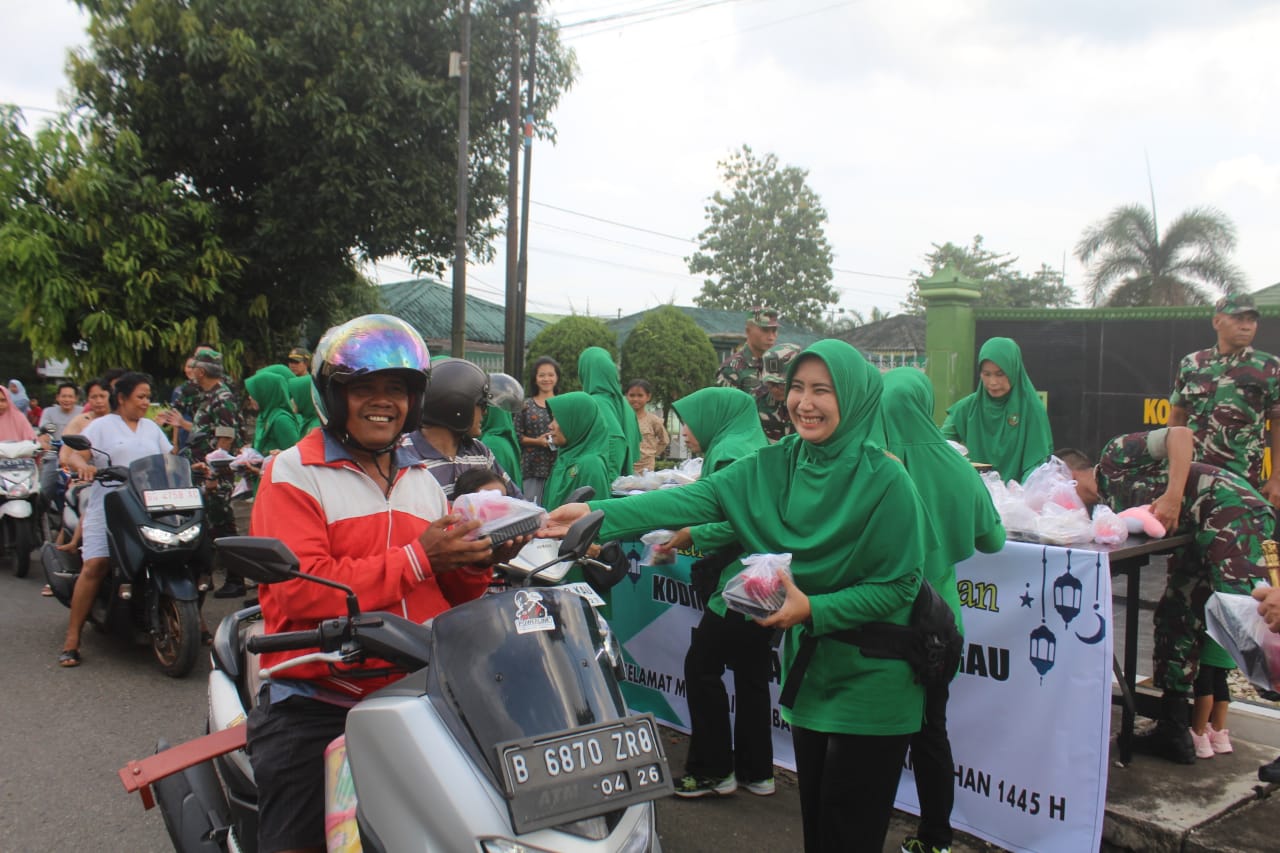 Sebanyak 500 lebih paket takjil dibagikan oleh personil TNI dan ibu-ibu Persit Kodim 0406 Lubuk Linggau kepada masyarakat yang melintasi jalan raya didepan kantor Kodim 0406 Lubuk Linggau maupun masyarakat yang berdomisili di seputaran kodim.