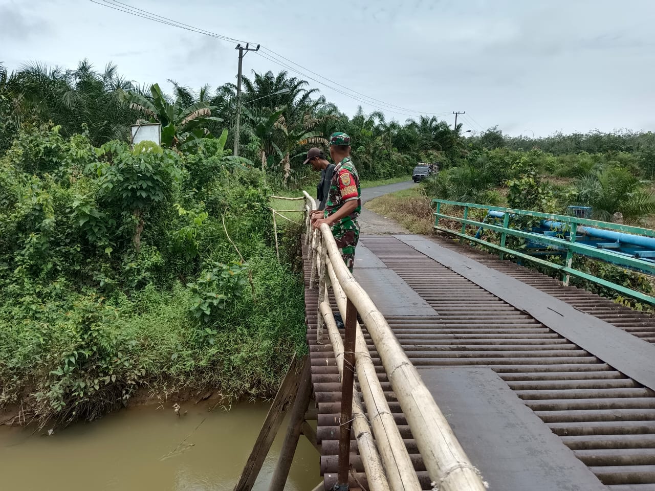 Serda Yuda Ade Hermawan Babinsa Desa Sukakarya Koramil 406-07/jayaloka Kodim 0406/Lubuklinggau Bersama mitra Karib Melaksanakan Pengecekan dan Monitoring Daerah rawan banjir di luapan Air sungai Perbatasan Desa Sukakarya Kecamatan Jayaloka Kabupaten Musi Rawas. Senin (01/04/2024)