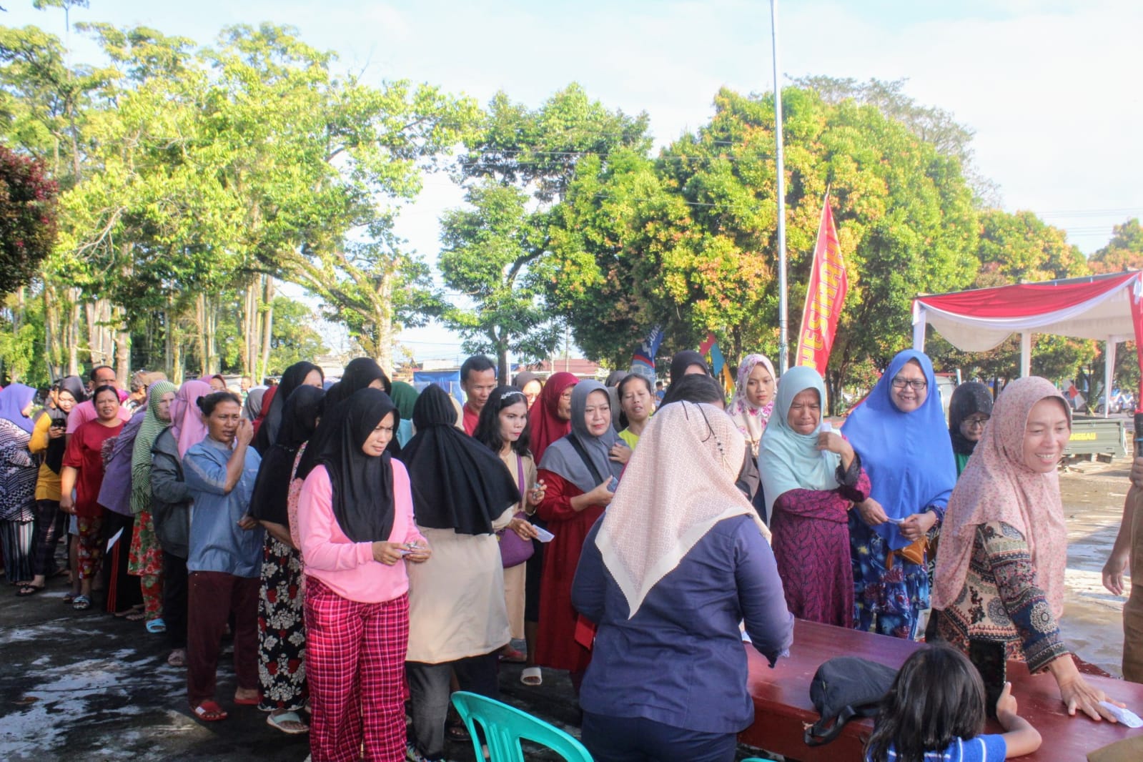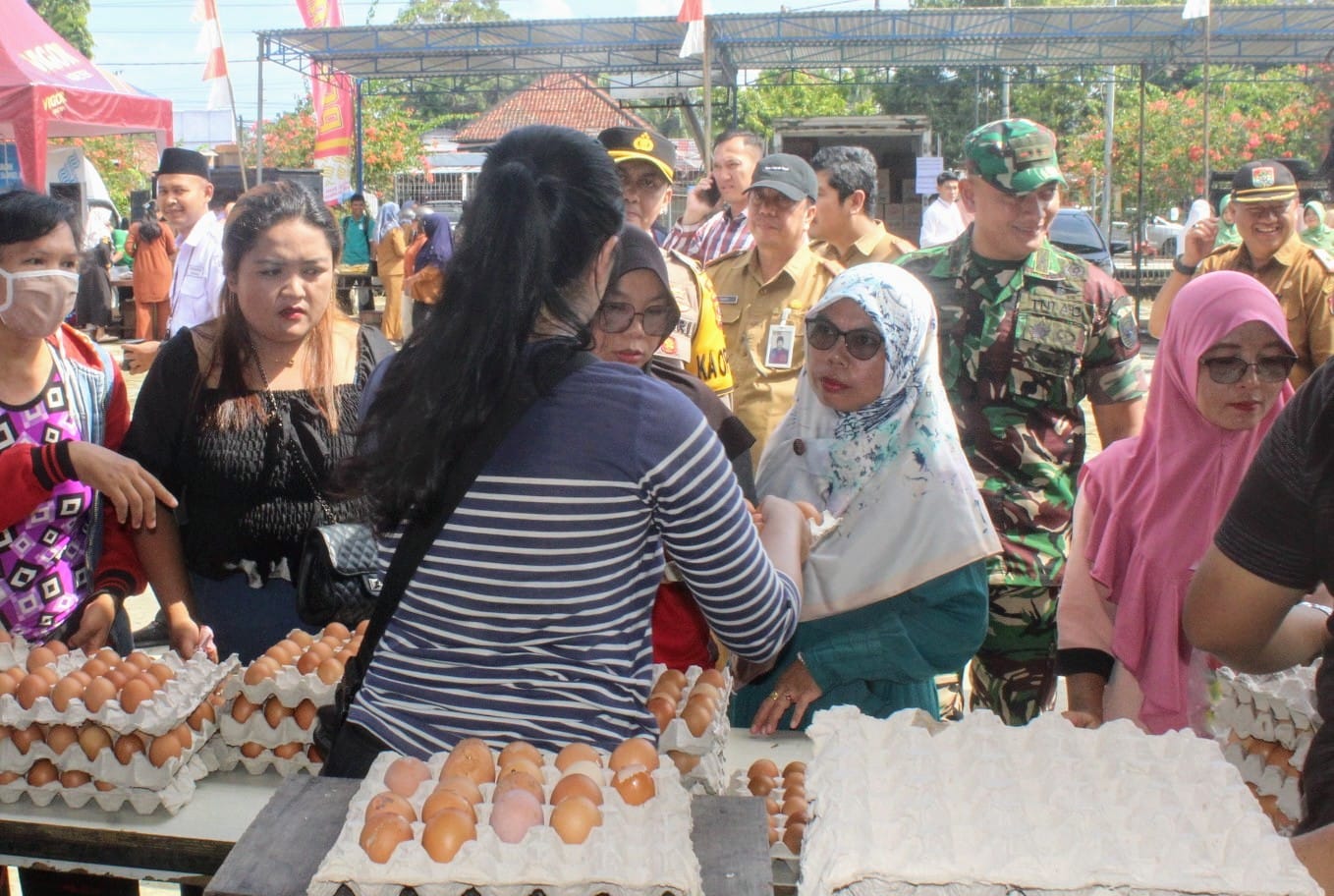 Ratusan Masyarakat Sangat Antusias Untuk Membeli Barang Kebutuhan Pokok Yang Dijual Dengan Harga Murah