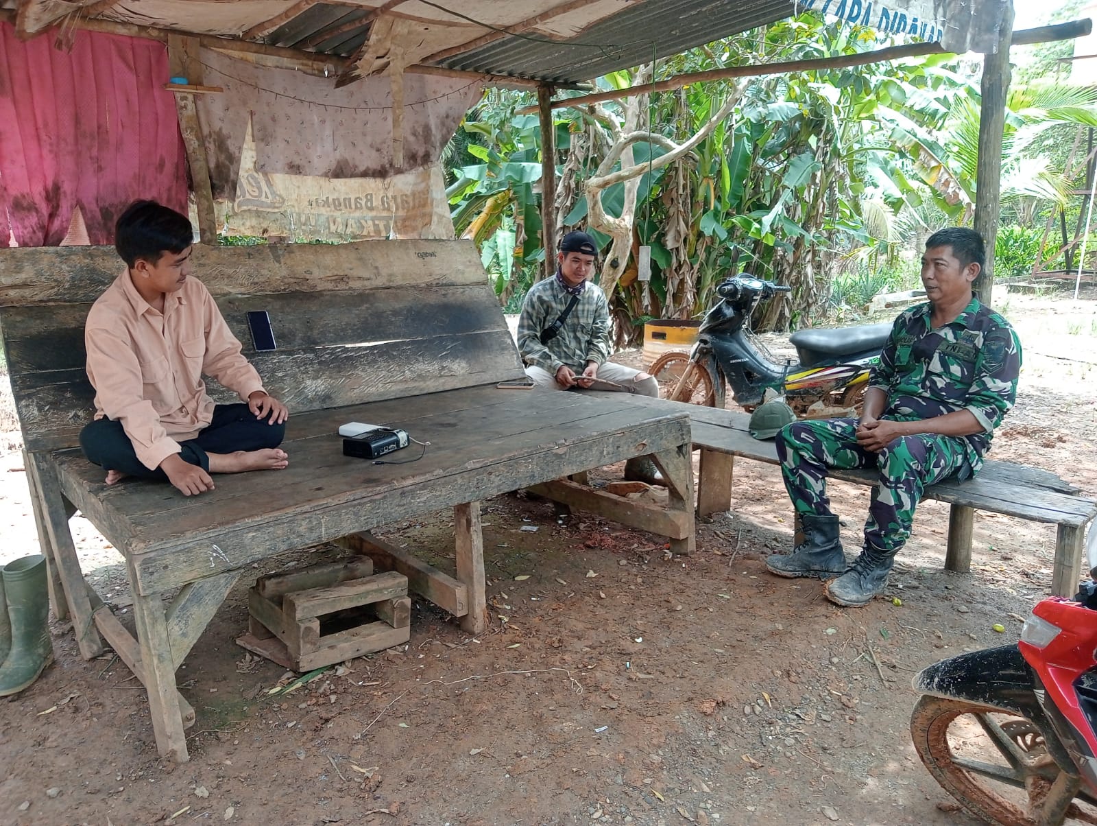 Babinsa Koramil 406-02/Rawas ilir Serda Nurkholis komsos bersama warga Didesa beringin sakti kecamatan Rawas Ilir ,kabupaten musi Rawas Utara .selasa(09/04/2024).