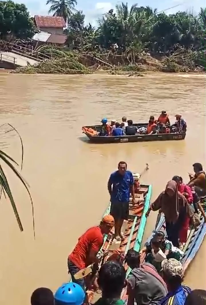 Pada kesempatan tersebut Kasdim Mayor Inf Nur Sigit Prasetya S.I.P.,M.Sc didampingi Pasi Ops Lettu Inf Ferli Ardiansyah serta Danramil Kapten Inf Assad serta Babinsa membantu masyarakat menyebrang menggunakan perahu LCR karena akses jembatan terputus.