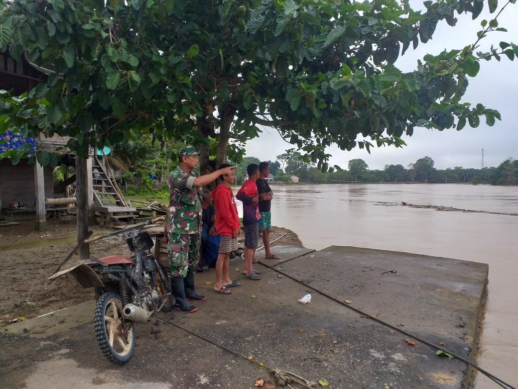 Guna pastikan keselamatan warga Serma Endang Permana laksanakan patroli keamanan dan memberikan himbauan kepada masyarakat agar selalu waspada dengan curahan Hujan Yang Ting yang dapat menyebabkan banjir yang lebih tinggi dari pada yang saat ini terjadi.