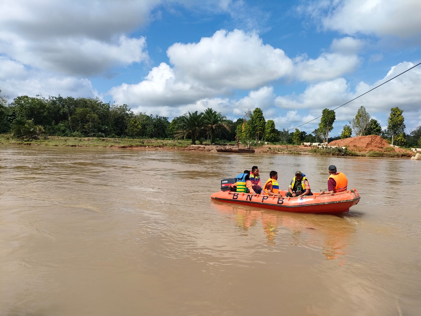 Serda Niki sudoyo bersama Basarnas Daerah dan masyarakat melakukan pencarian orang hilang yang di perkirakan hanyut dan tenggelam di sungai.