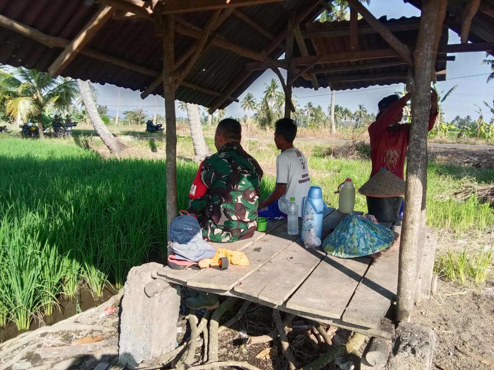 “Kali ini kita datang ke lokasi sawah milik warga desa Banpres disinilah kita mendengar keluhan para petani”, ujar Serda Rustan.