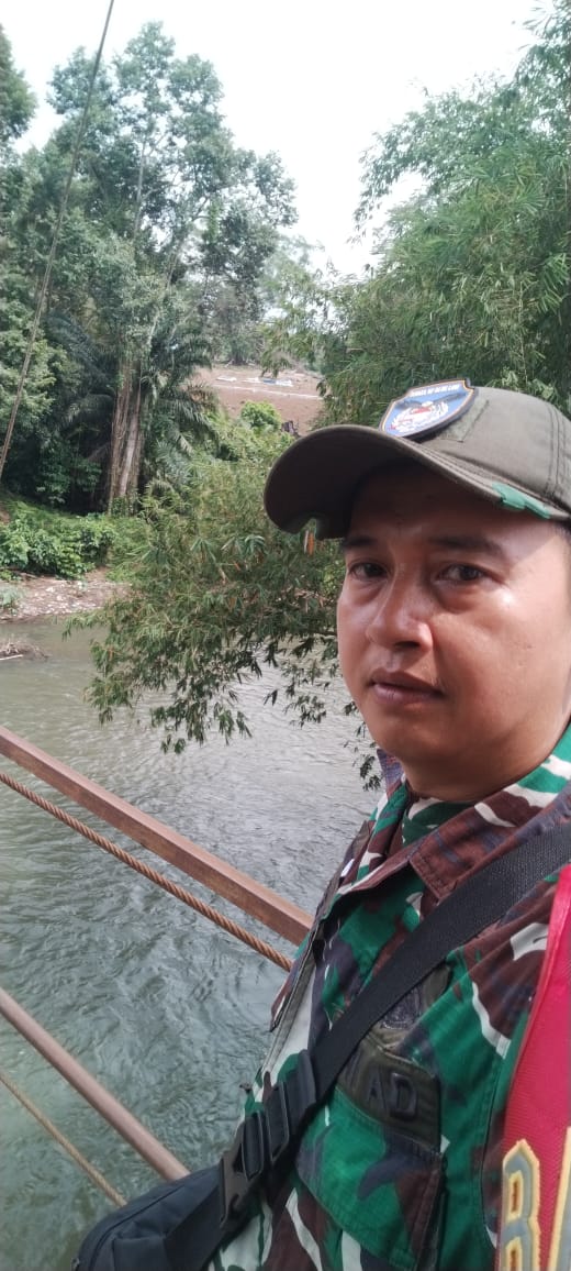 Antisipasi Banjir, Babinsa Koramil 406-06/Tugumulyo koptu Supendi Cek Volume Air Sungai di wilayah binaan.
