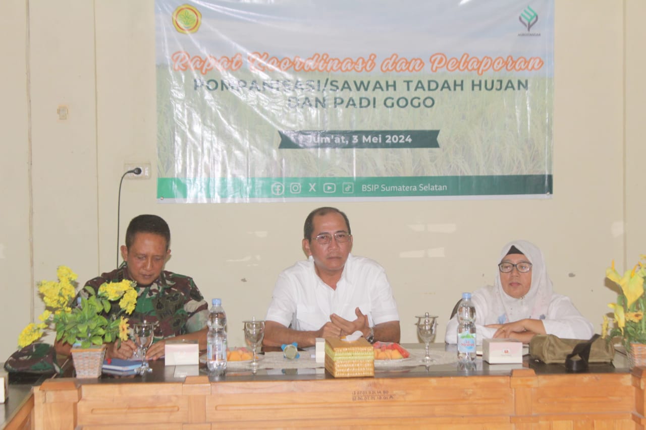 Acara rapat koordinasi dan pelaporan pompanisasi sawah tadah hujan dan padi gogo dihadiri dan dibuka oleh Kepala BSD Sumsel Dr. Suharyanto Sp.Mp. setelah acara dibuka secara resmi kegiatan dilanjutkan dengan diskusi antara dinas pertanian dengan perwakilan kodim 0406/Lubuk Linggau.(Pendim 0406/LLG).