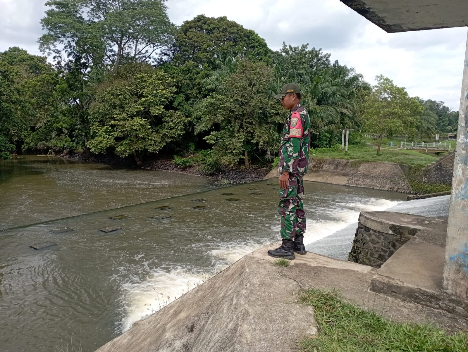 Antisipasi banjir Babinsa Koramil 406-06/Tugumulyo Serda nusdar aktif Patroli cek Debit Air di Wilayah Binaan.