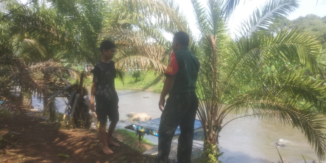 Babinsa Koramil Lubuklinggau Melaksanakan Patroli sekitar tepian sungai dan mengecek debit air sungai di Wilayah binaan masing-masing.