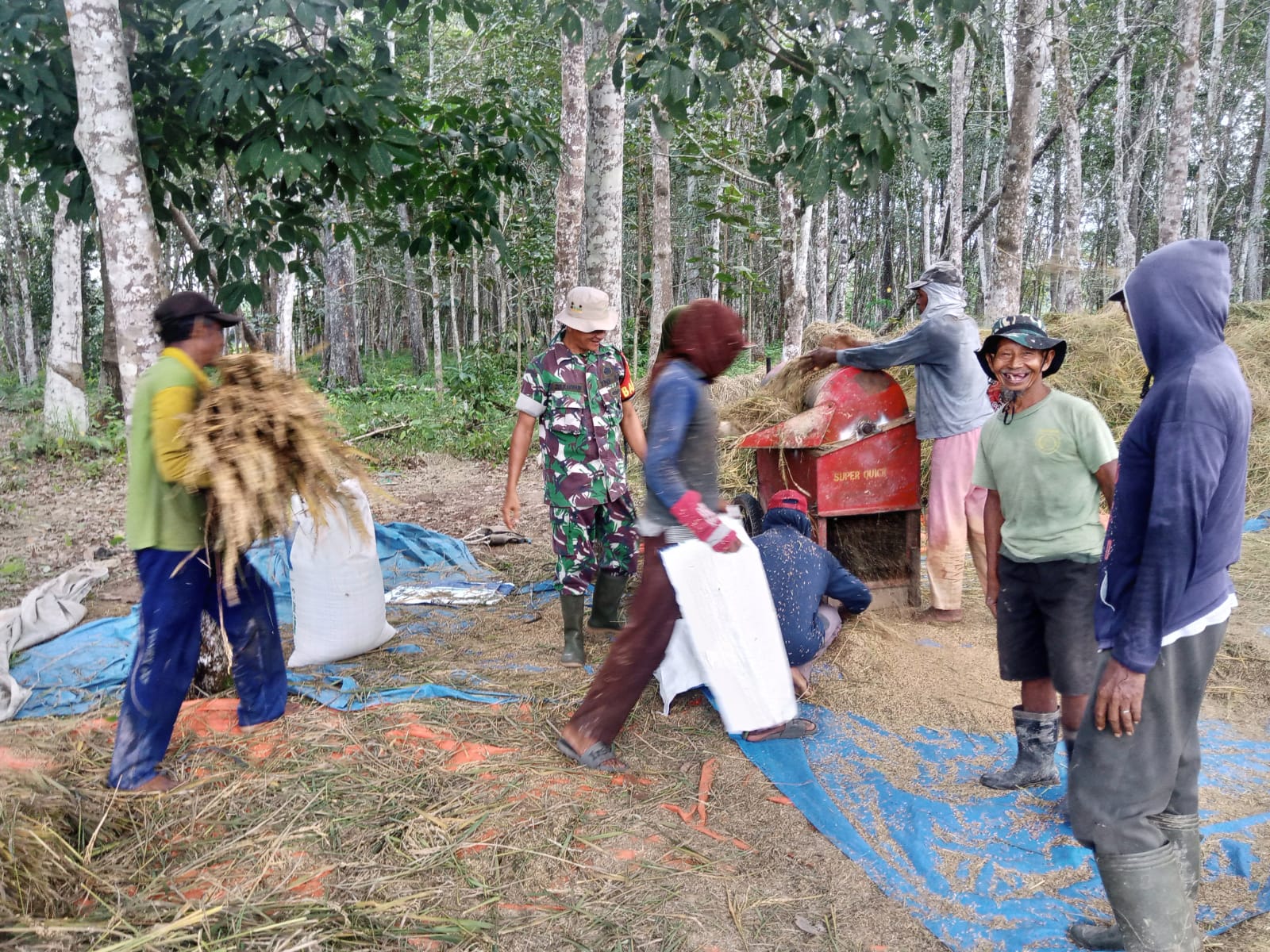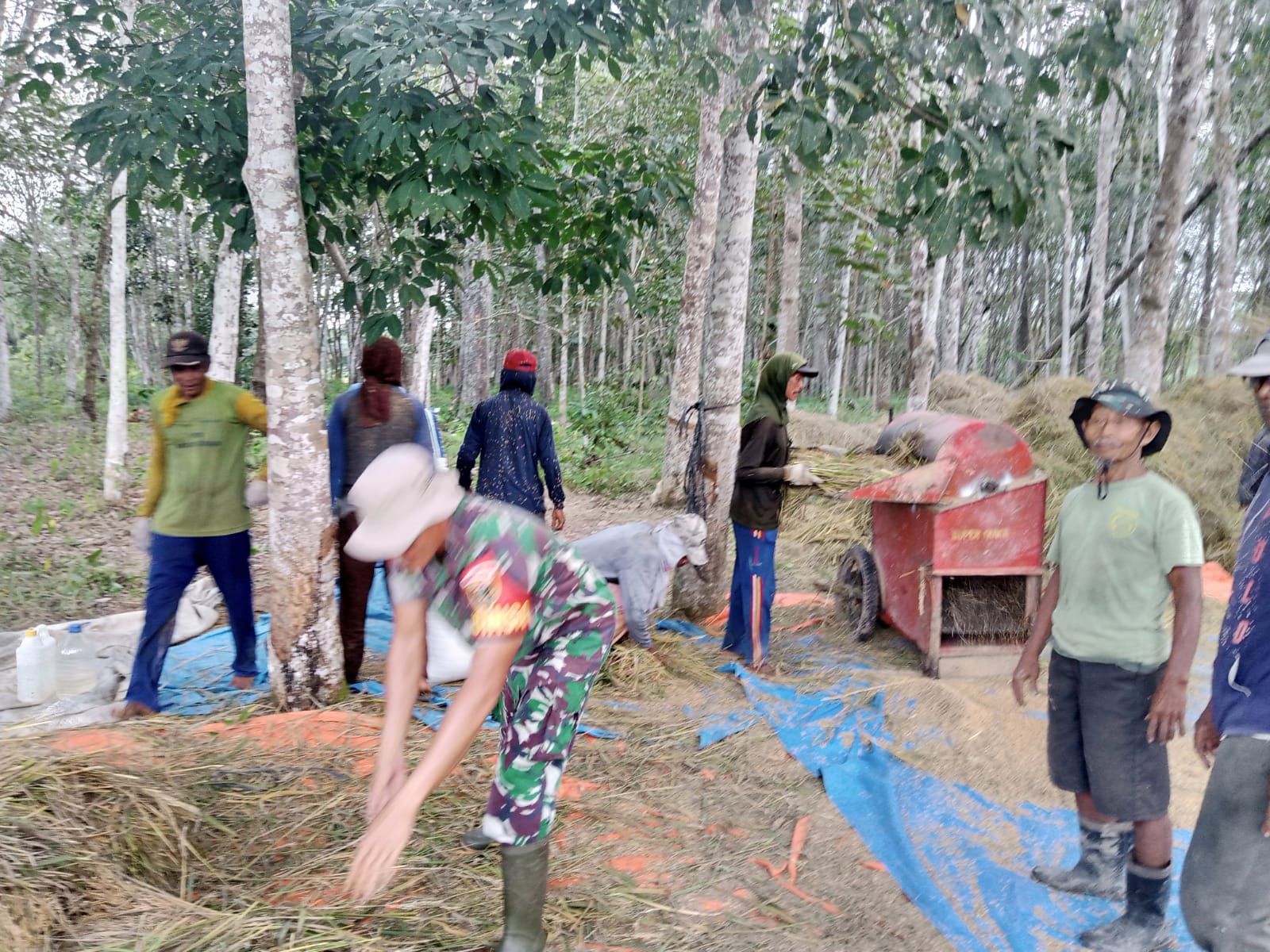 Pada kali ini Babinsa Koramil 406-05/Muara Kelingi Serma Zulkarnain melakukan pendampingan sekaligus membantu kelompok tani melaksanakan panen perdana.