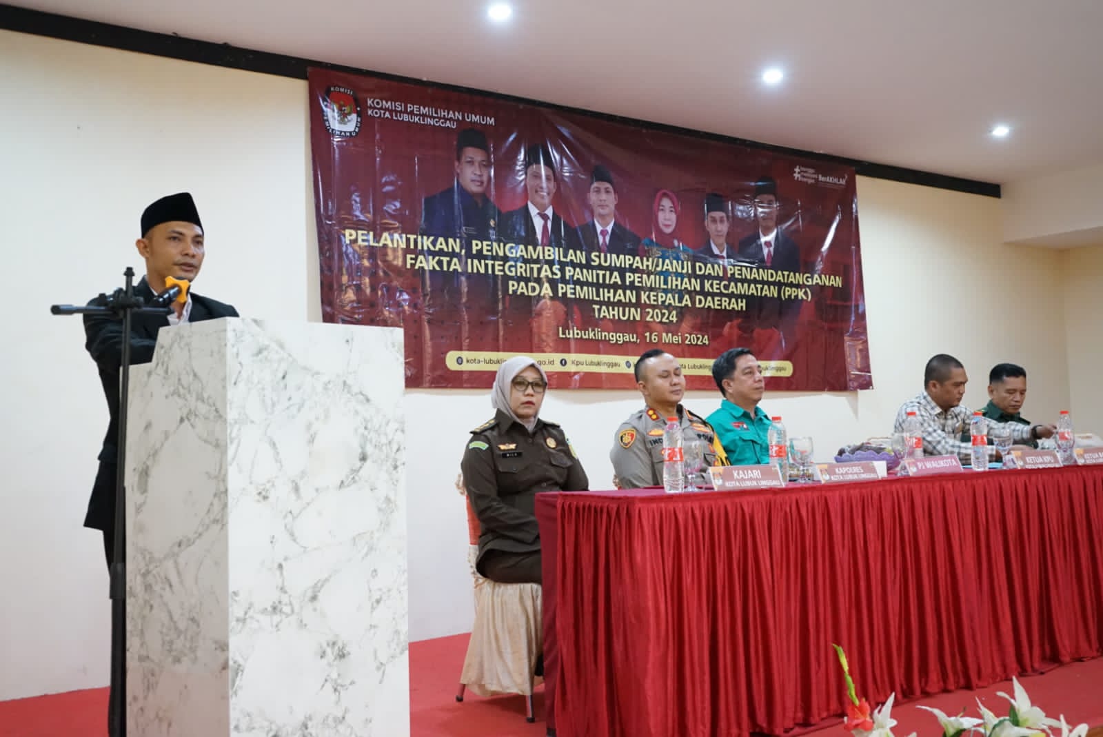 Acara tersebut dihadiri oleh Ketua KPU Kota Lubuk Linggau Aspin Dodi, Ketua Bawaslu, Pj Sekda H. Tamri, Dandim 0406/Lubuk Linggau diwakili Letda Cku Herman DC, Kapolres Kota Lubuk Linggau AKBP Indra Arya Yudha, Perwakilan Kajari,tamu undangan dan PPK yang dilantik.