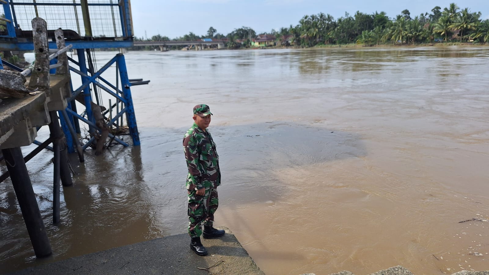 Dengan melaksanakan patroli sekitar tepian sungai dan tempat rawan banjir, Babinsa Koramil 406-03/rupit sertu Yuda mengecek debit air di desa binaan Kecamatan rupit, hasil pengecekan hari ini masih di batas normal.