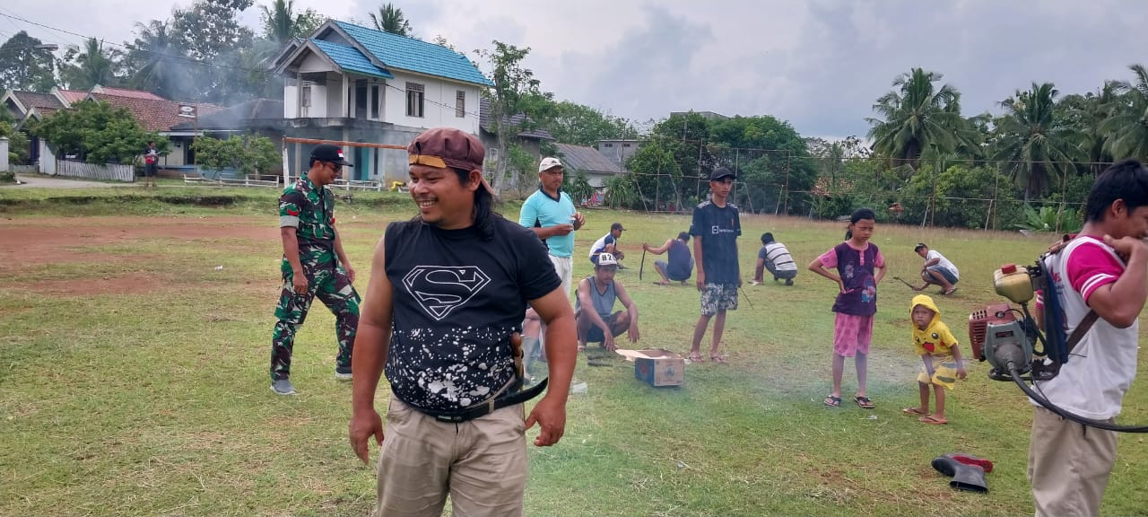 Kegiatan kerja bakti ini merupakan wujud kebersamaan dan kepedulian dalam menjaga kebersihan lingkungan serta mendukung program desa yang bersih, rapi, dan sehat. Terlihat semangat kebersamaan bergotong royong membersihkan lapangan dan saluran keliling lapangan dengan penuh antusiasme.