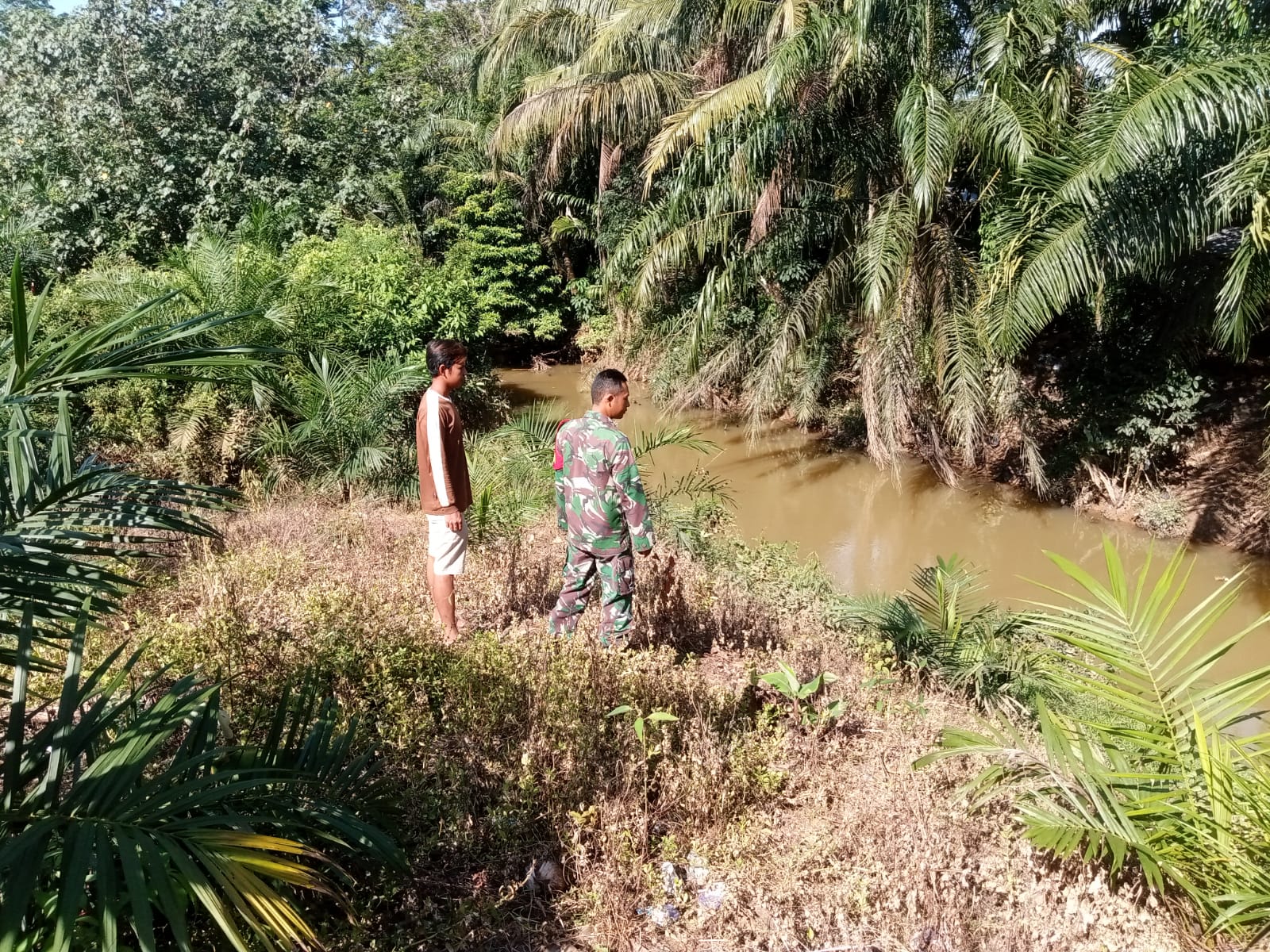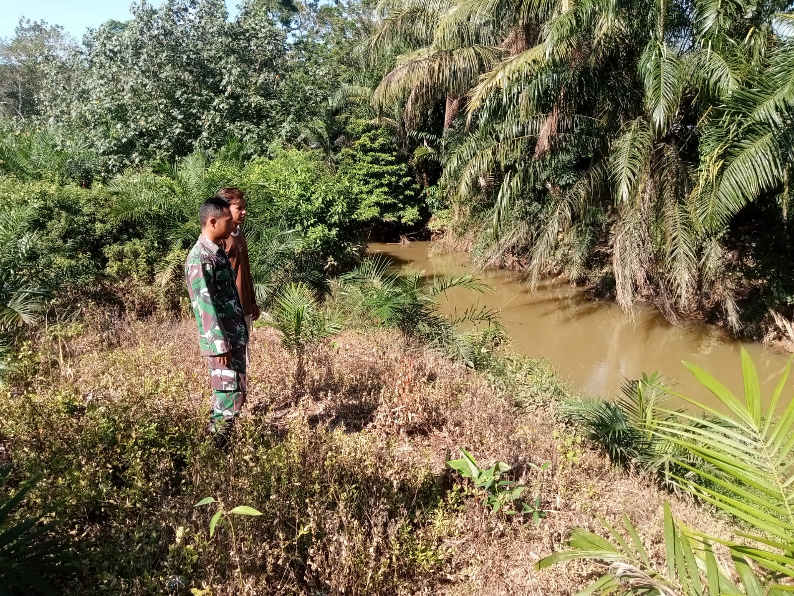 Babinsa Desa Sukakarya Cek Kondisi Terkini Debit Air Sungai yg rawan dan sering meluap Yang sering menyebabkan banjir